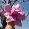 Megérte kivárni a három évet az első virágok megjeleméséig (2017)!! A galéria minden fényképét magam készítettem. A virágok mögött látható kezem méretéből következtetni lehet a virágok lenyűgöző méretére (19cm átmérő). A fényképek eltérő színét a virágok öregedésével együtt járó kivilágosodás okozza. Ennek a fajtának nem csak a virágai nagyon szépek, de a legformásabb fa koronát is neveli. (Földlabdás törzses faként is kapható!)
